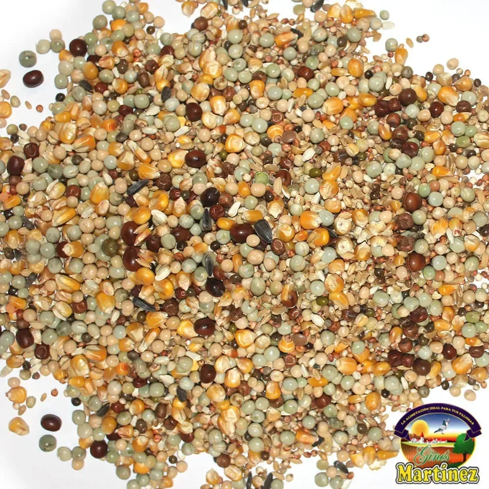 Maíz P., Sorgo, Sorgo Blanco, Trigo, Guisante Tasmania, Guisante Amarillo P., Veza, Guisante Verde P., Alazor, Arroz cáscara, Soja verde, Pipa Girasol, Yeros y Feberoles.